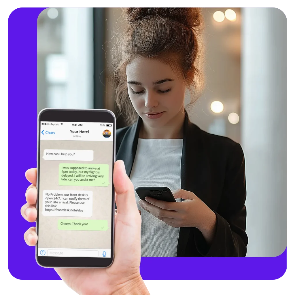 - Real-Time Conversations: Engage with guests instantly, wherever they are.